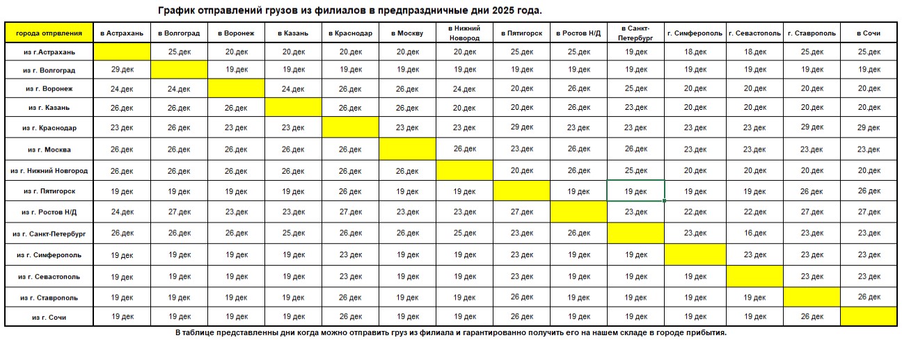 График доставки грузов в период новогодних праздников 2026 г.